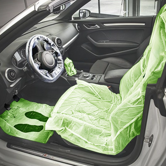 - Tear-resistant complete protection solution with five elements in a set (protection for seat, footwell, handbrake, gearshift, steering wheel)