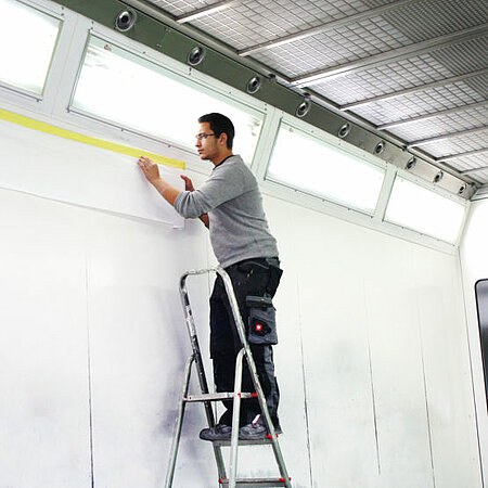 - Depending on the volume of painting work, the film can remain in the booth for a longer period of time and can be removed again in one go